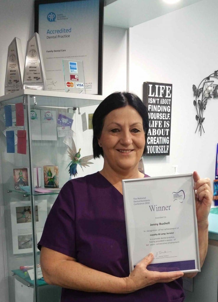 In September 2016, our dental assistant Jenny, won the prestigious NSW Dental Assistants Professional Association “Loyalty & Long Service” Award 2016